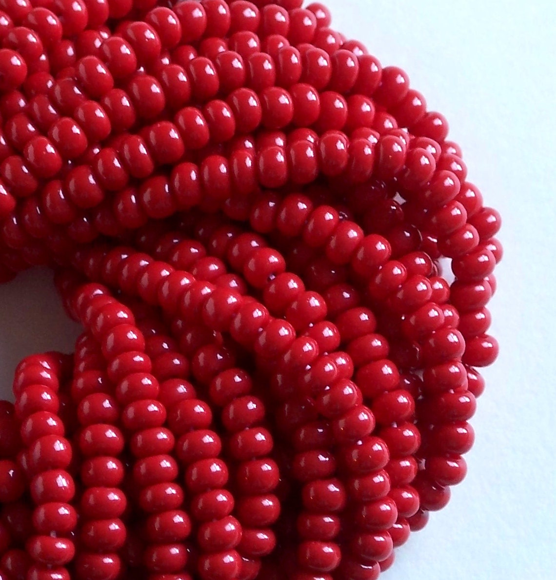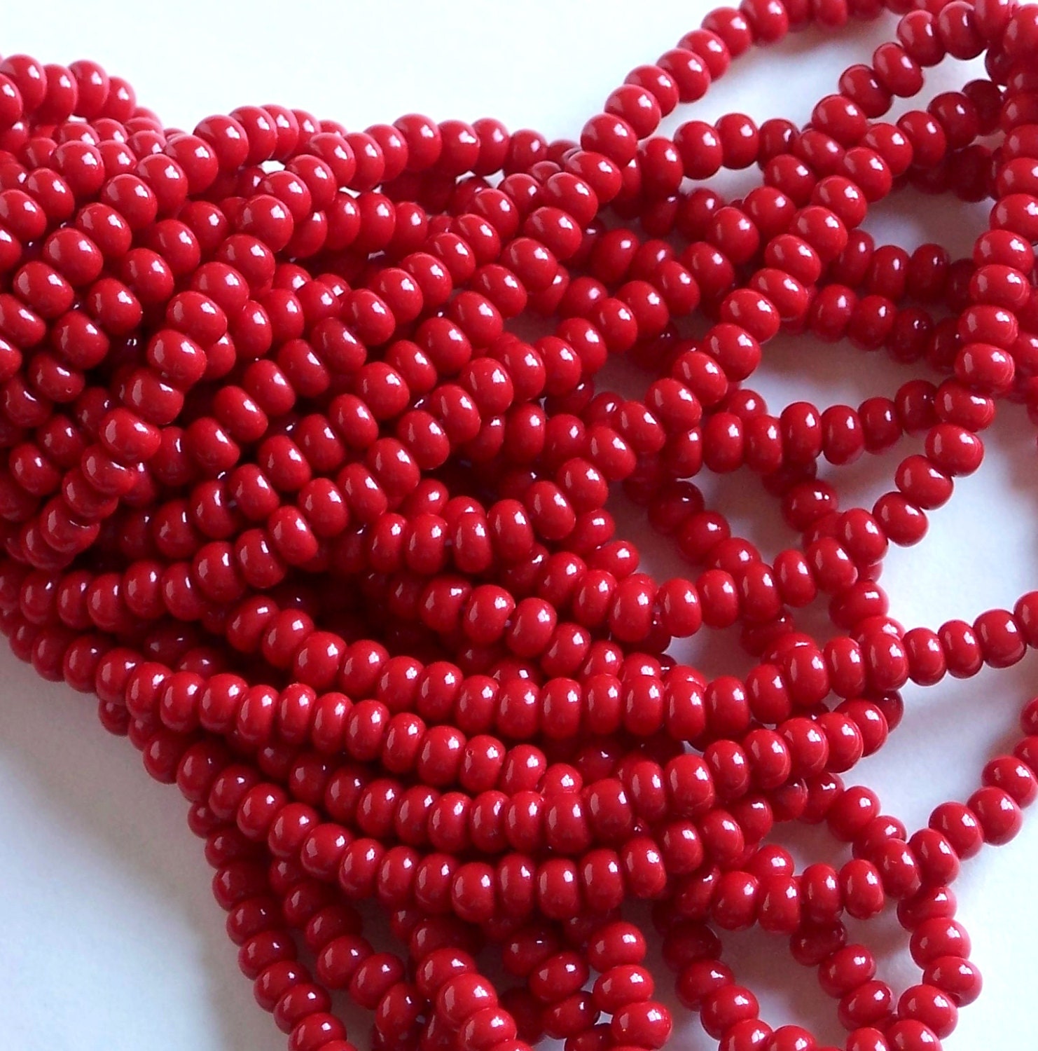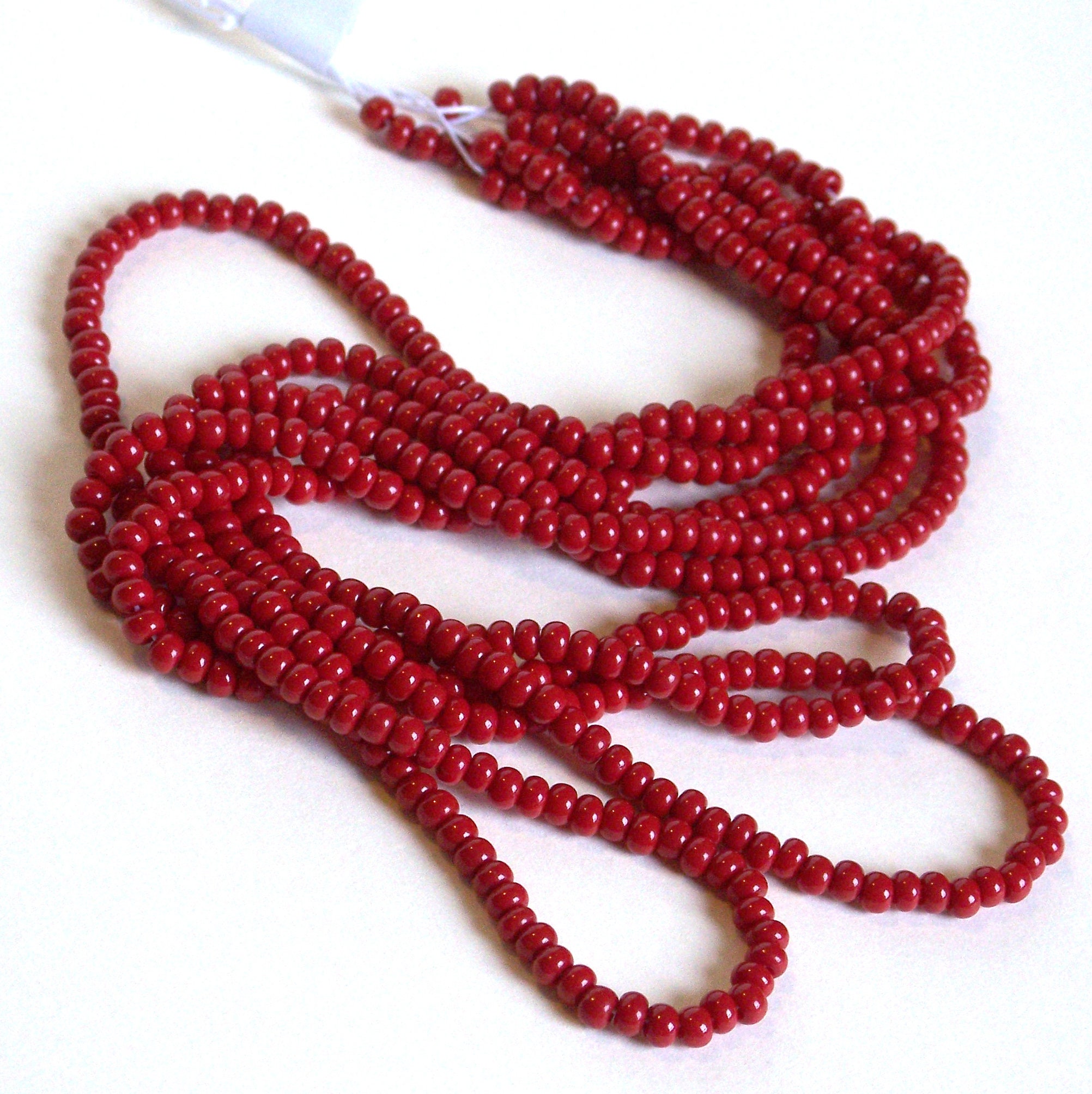 Dark Red Opaque 6/0 Czech Seed Beads are a deep rich red. Great to use as an accent or full on project. As with all Czech seed beads, there is some minor variation in bead and opening hole size. Perfect for Beachy or Boho designs.