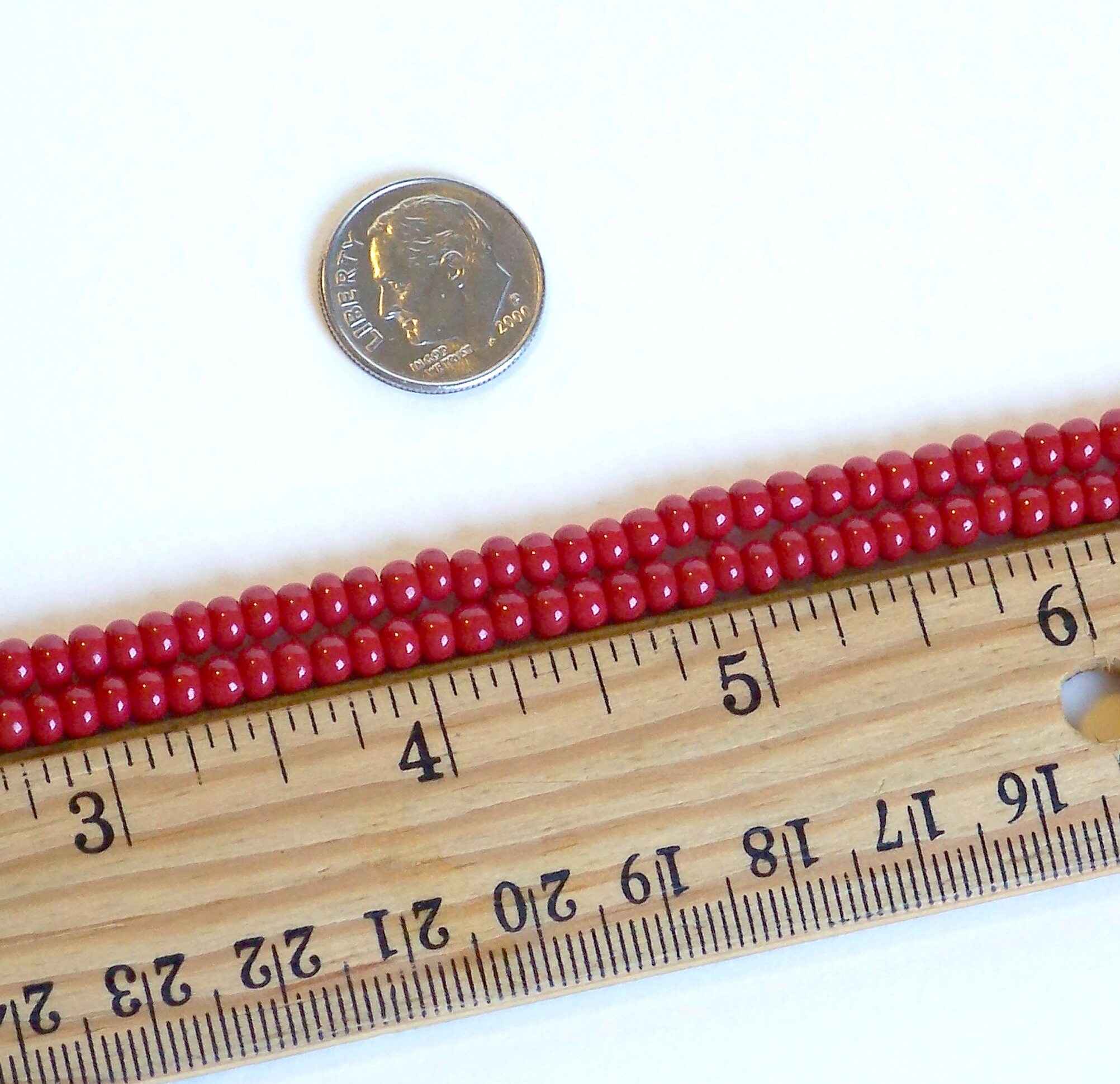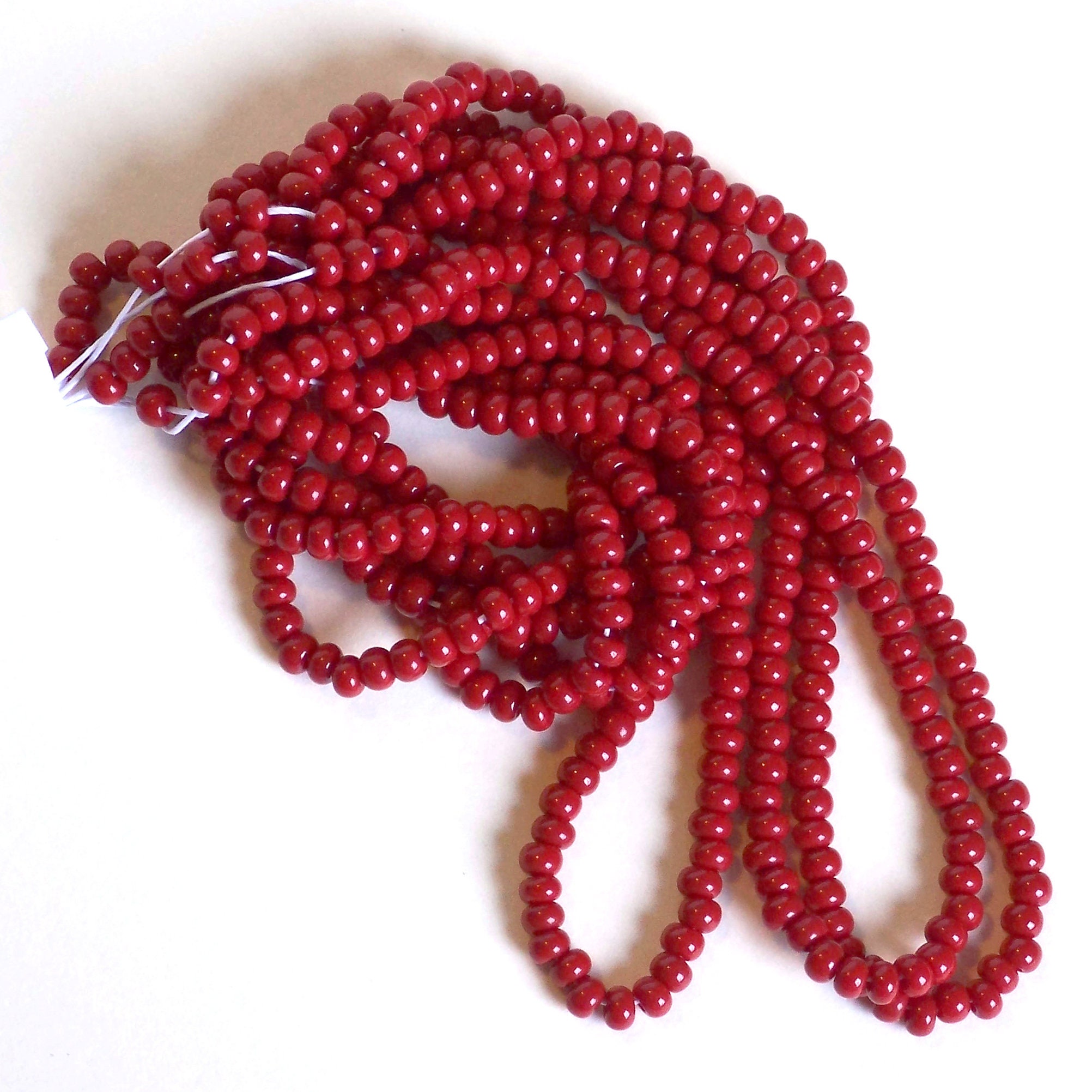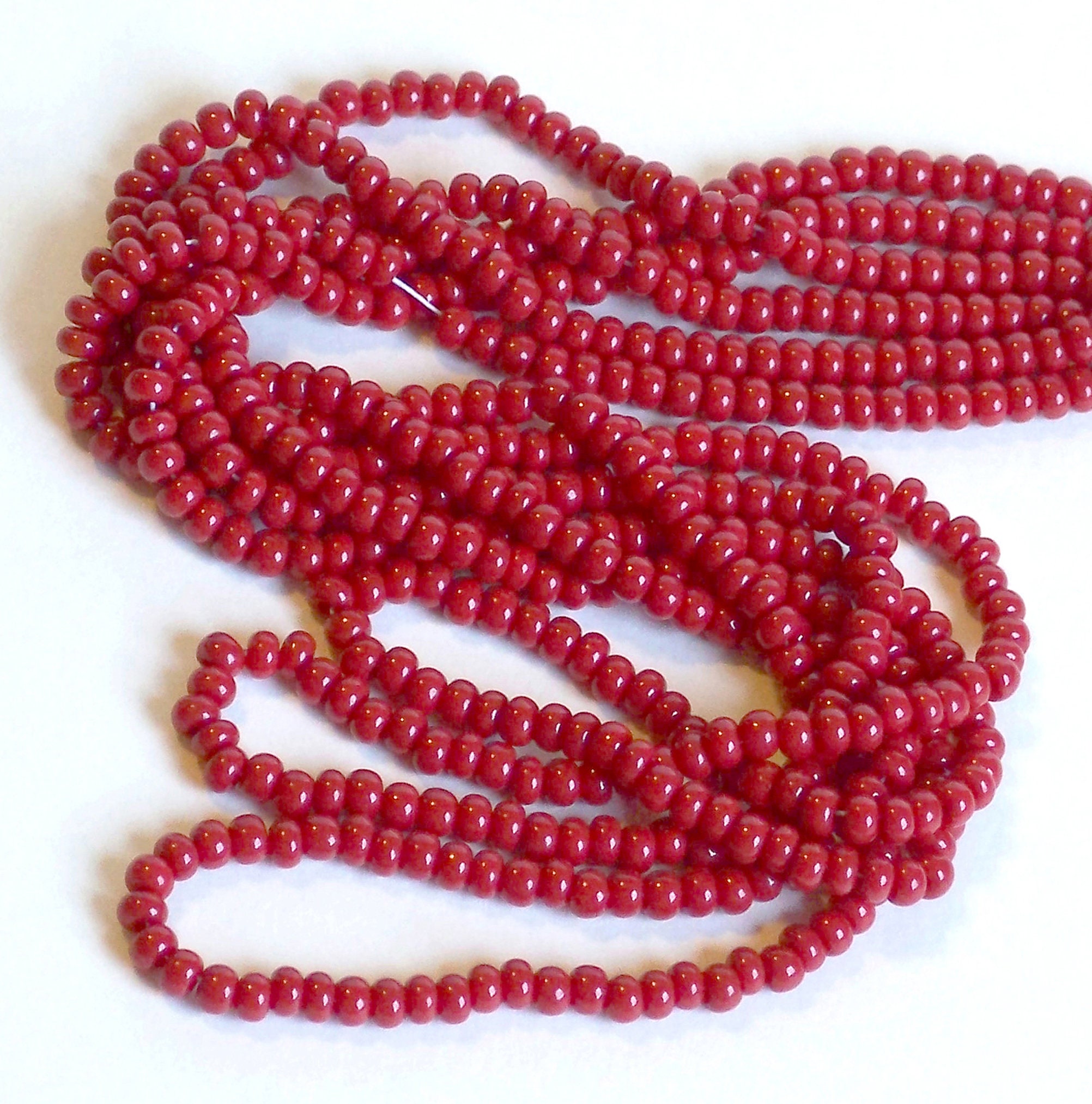 Dark Red Opaque 6/0 Czech Seed Beads are a deep rich red. Great to use as an accent or full on project. As with all Czech seed beads, there is some minor variation in bead and opening hole size. Perfect for Beachy or Boho designs.