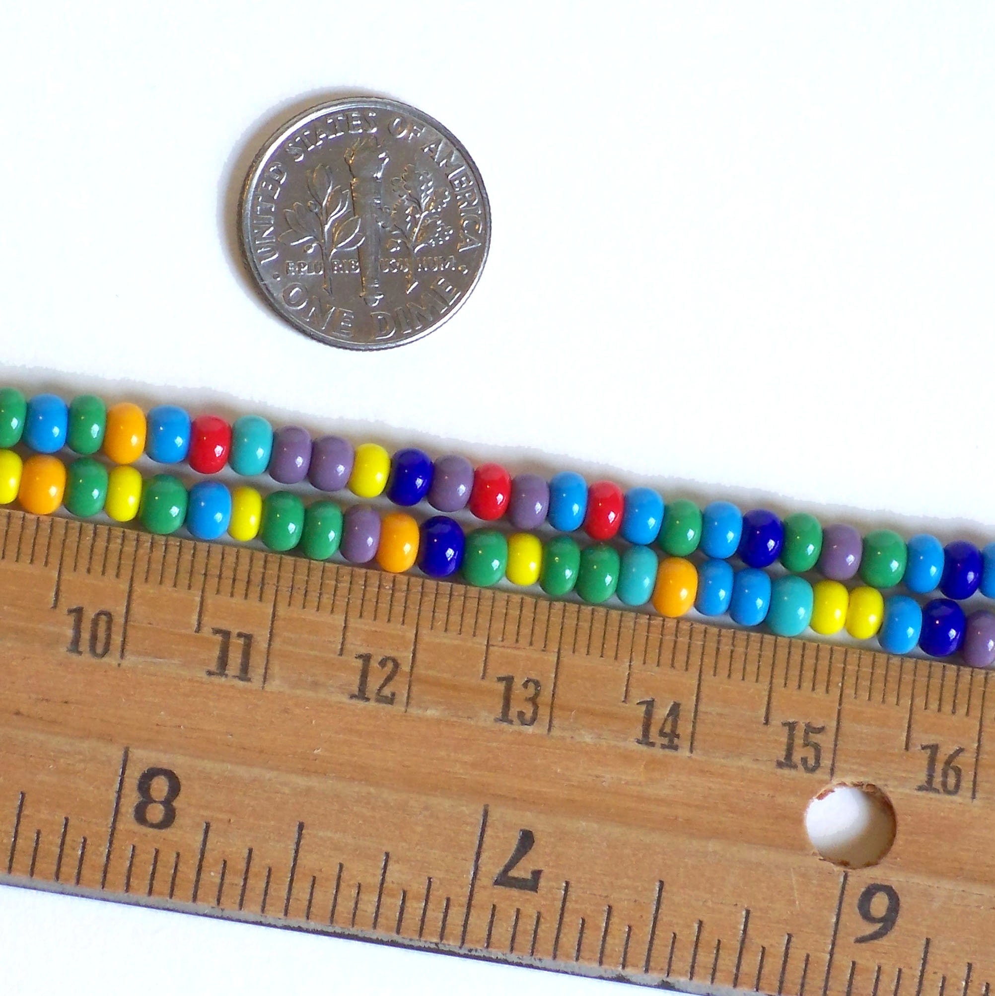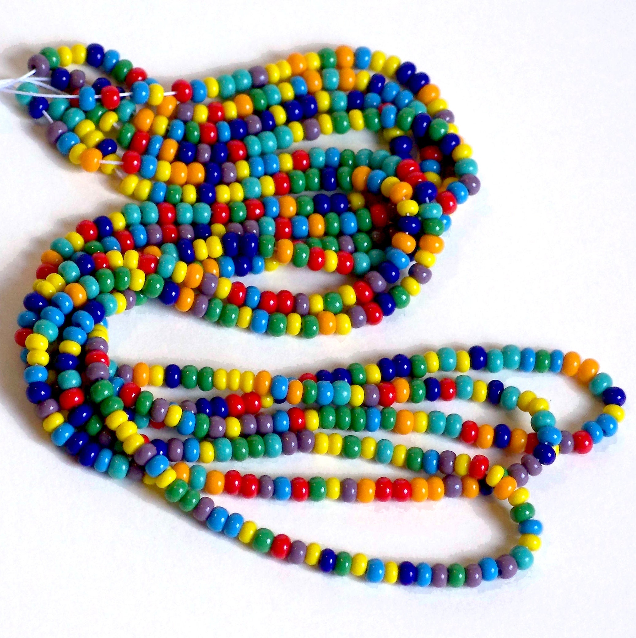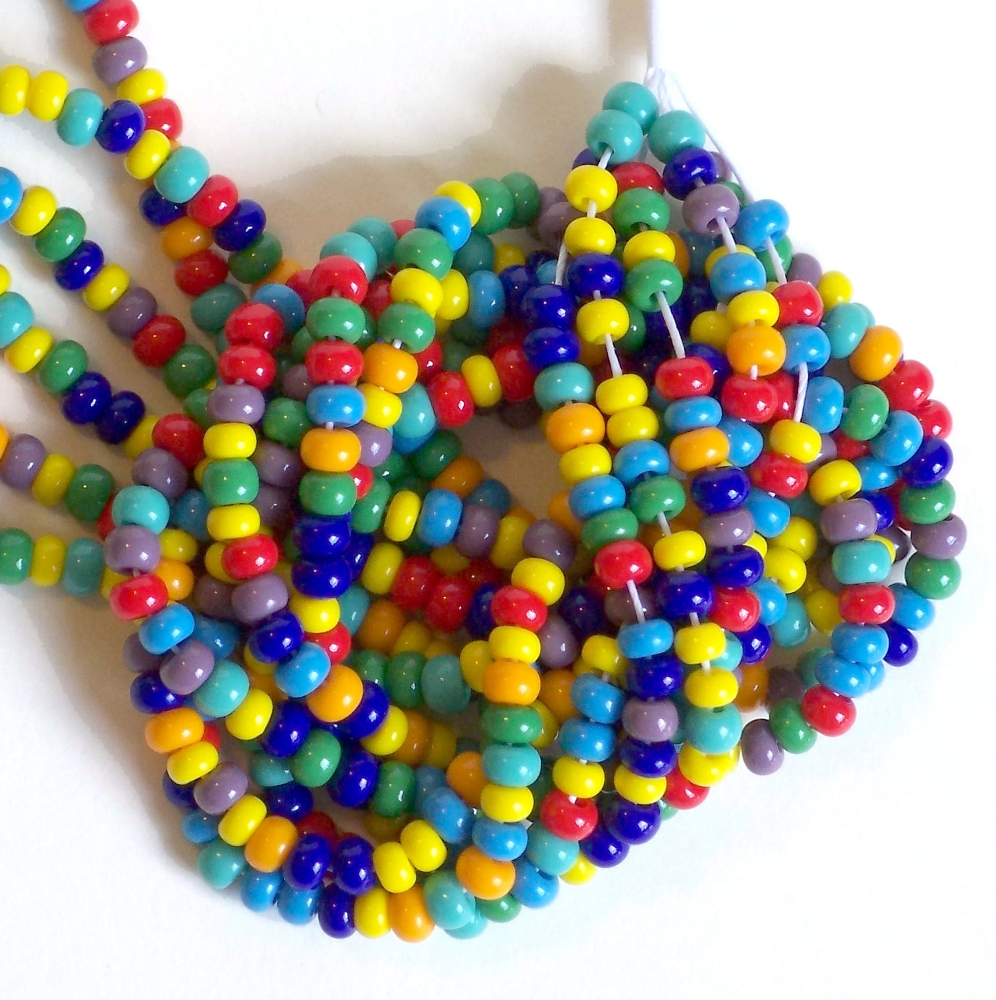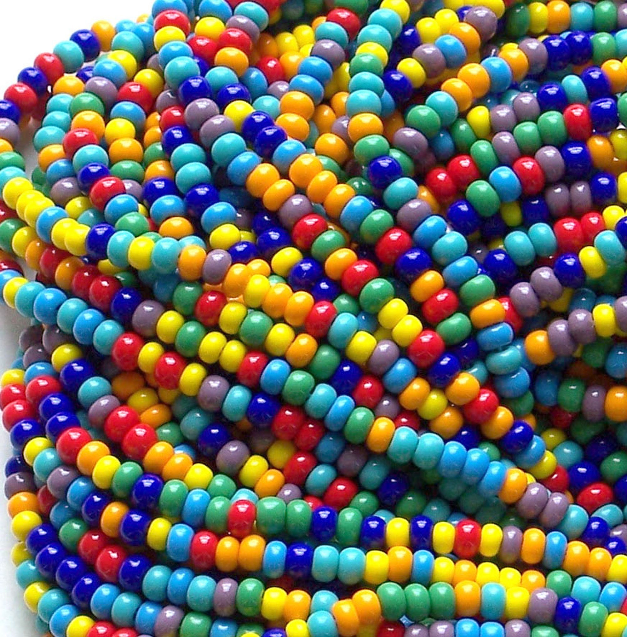 Summer fun with Crayon Box Classic Colors - Red, Orange, Yellow, Green, Blue, Turquoise Blue and Green, Purple. Lots of fun in these brightly colored beads. with some size variations as well. As with all bead mixes, there is some slight variation in bead and hole size.