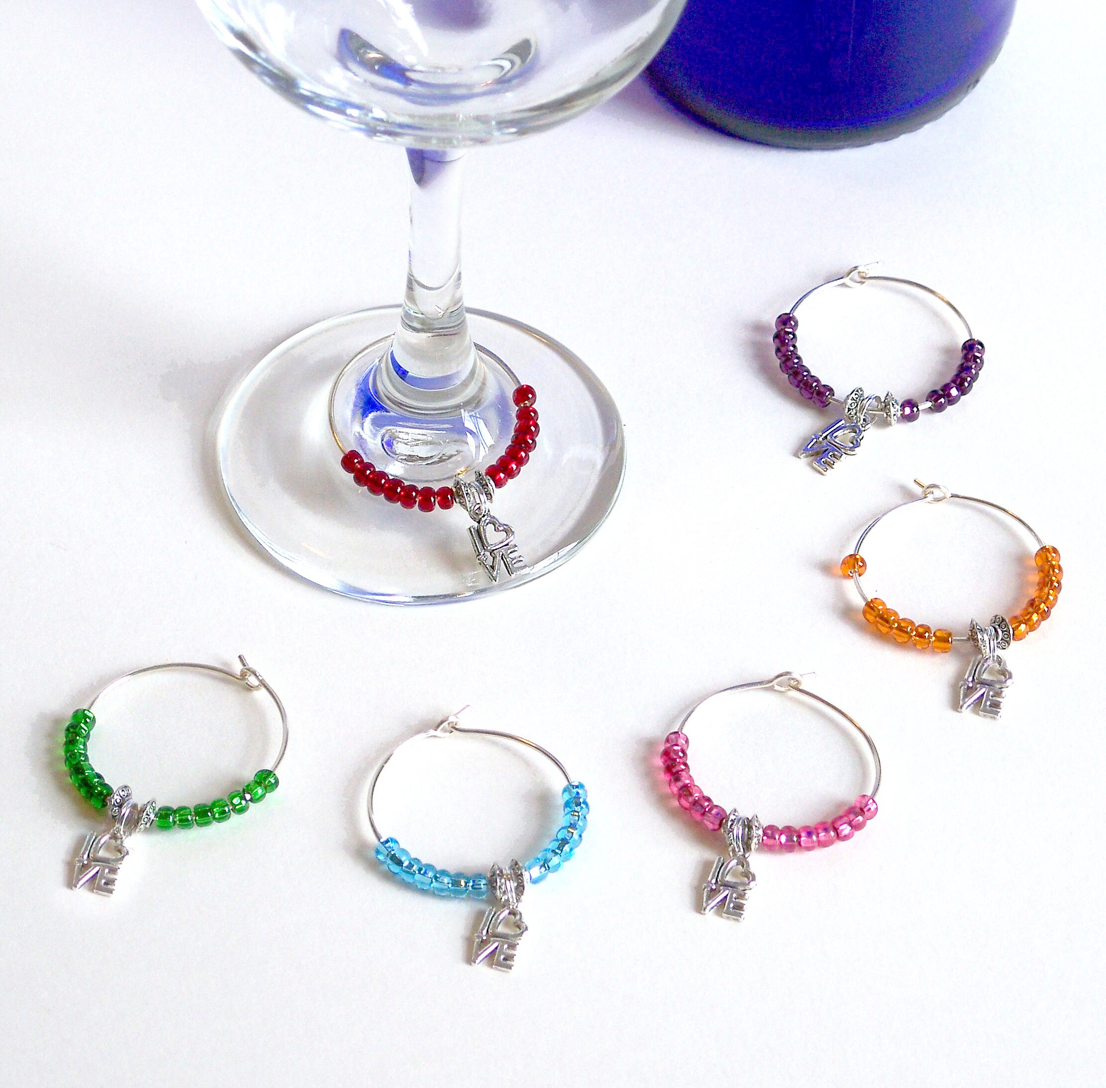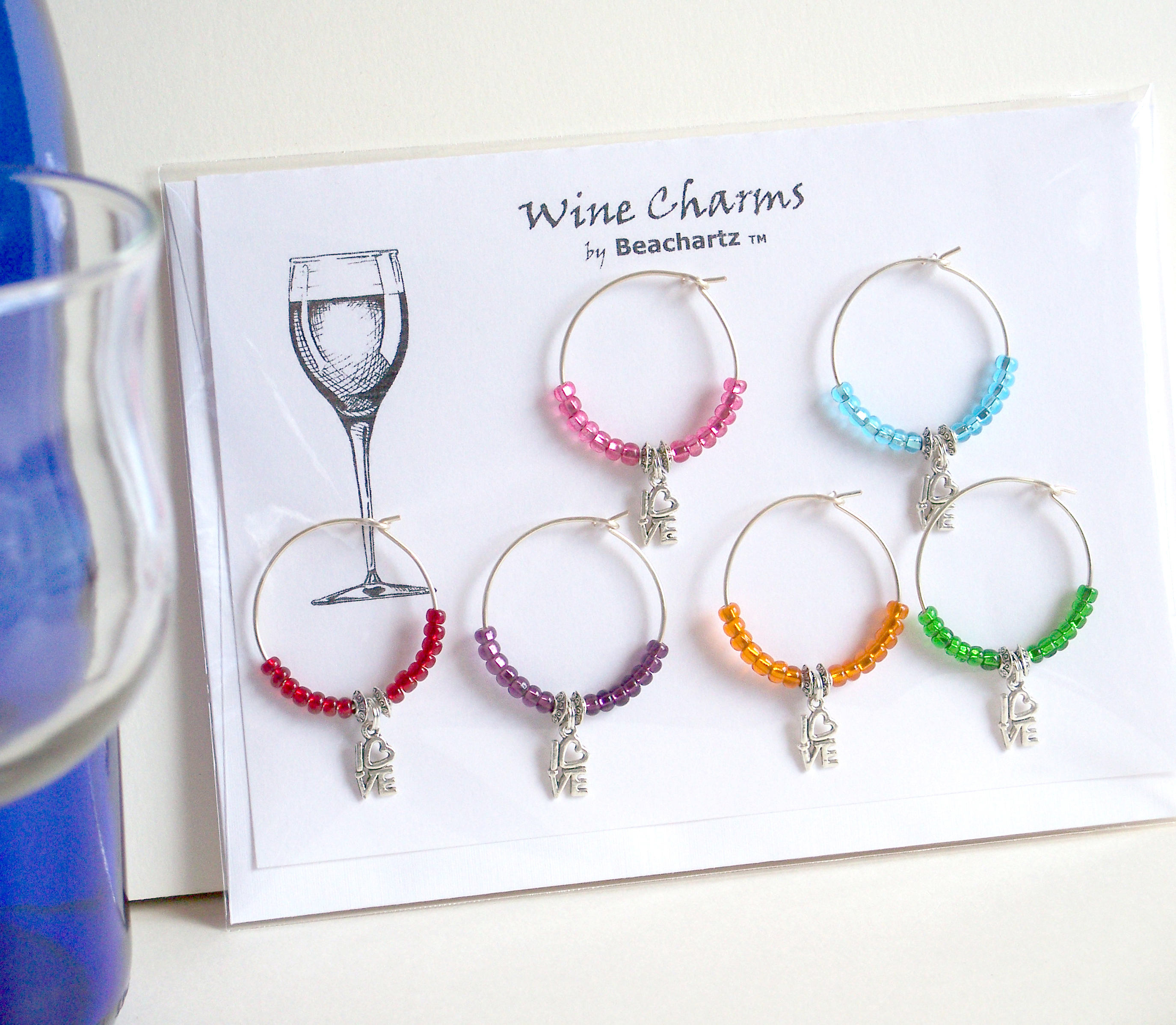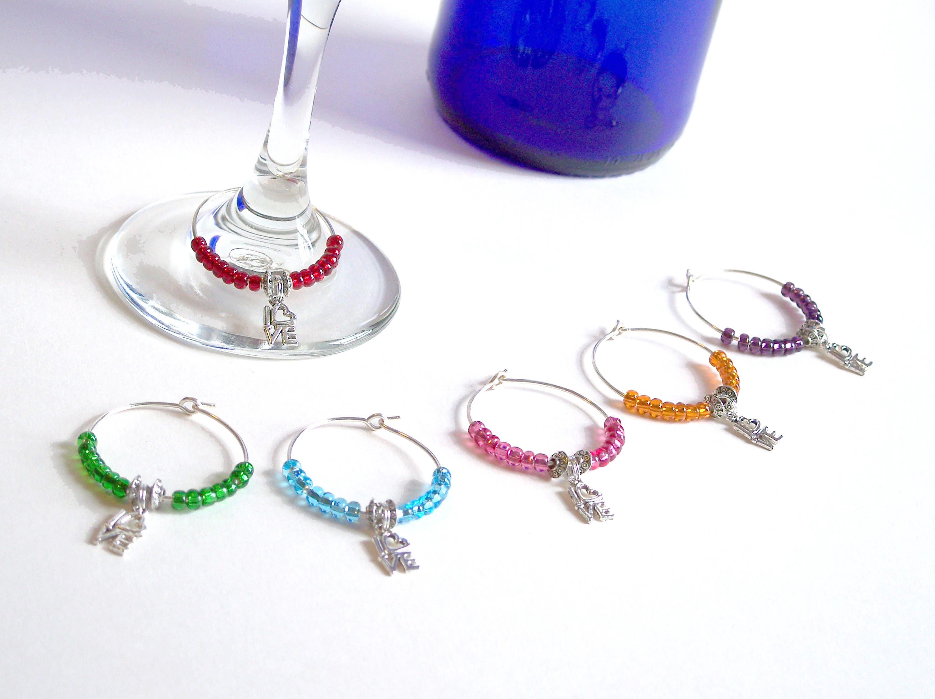 Jewelry for your wine glass, LOVE Wine Charms, Set of 6.