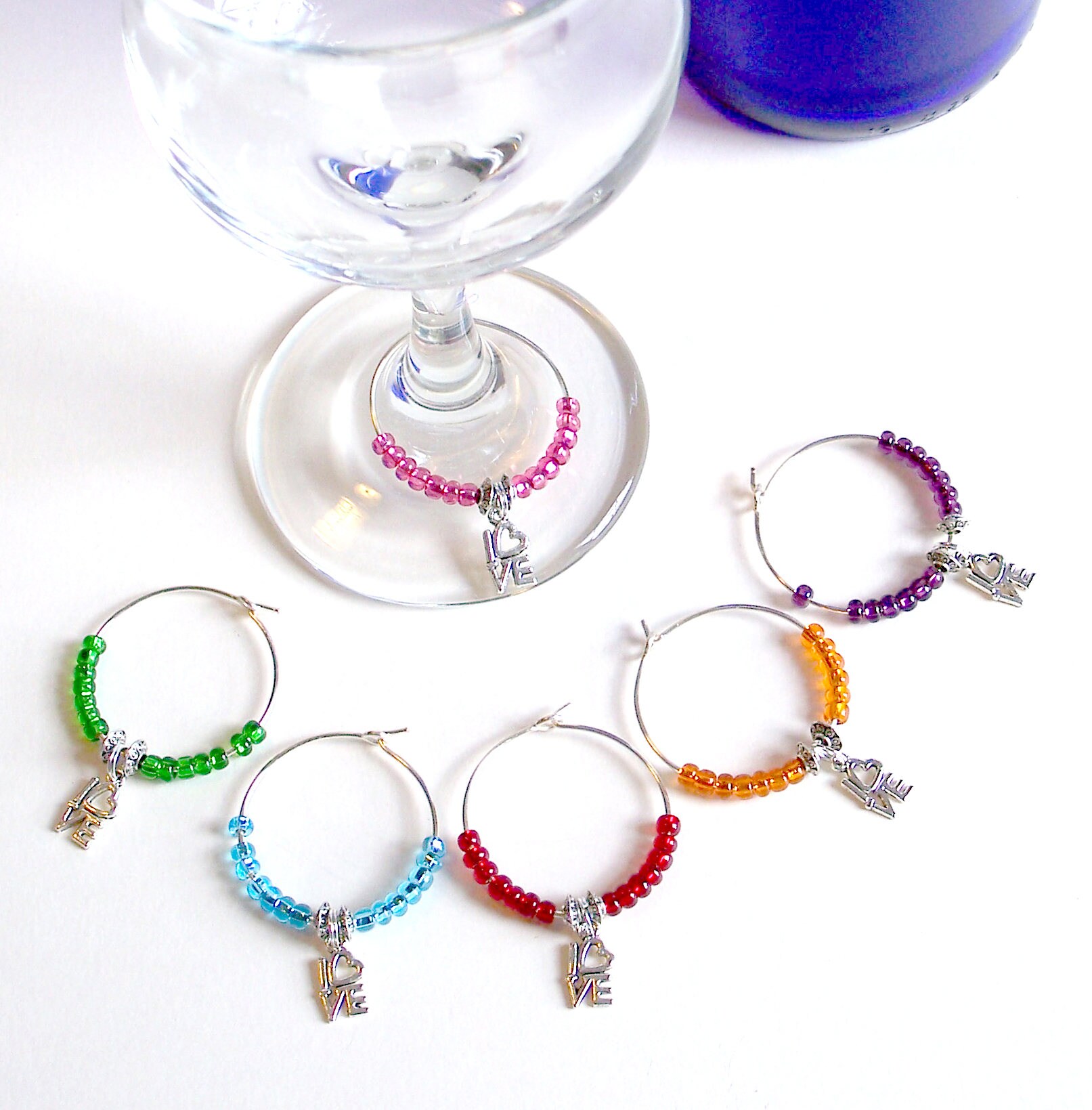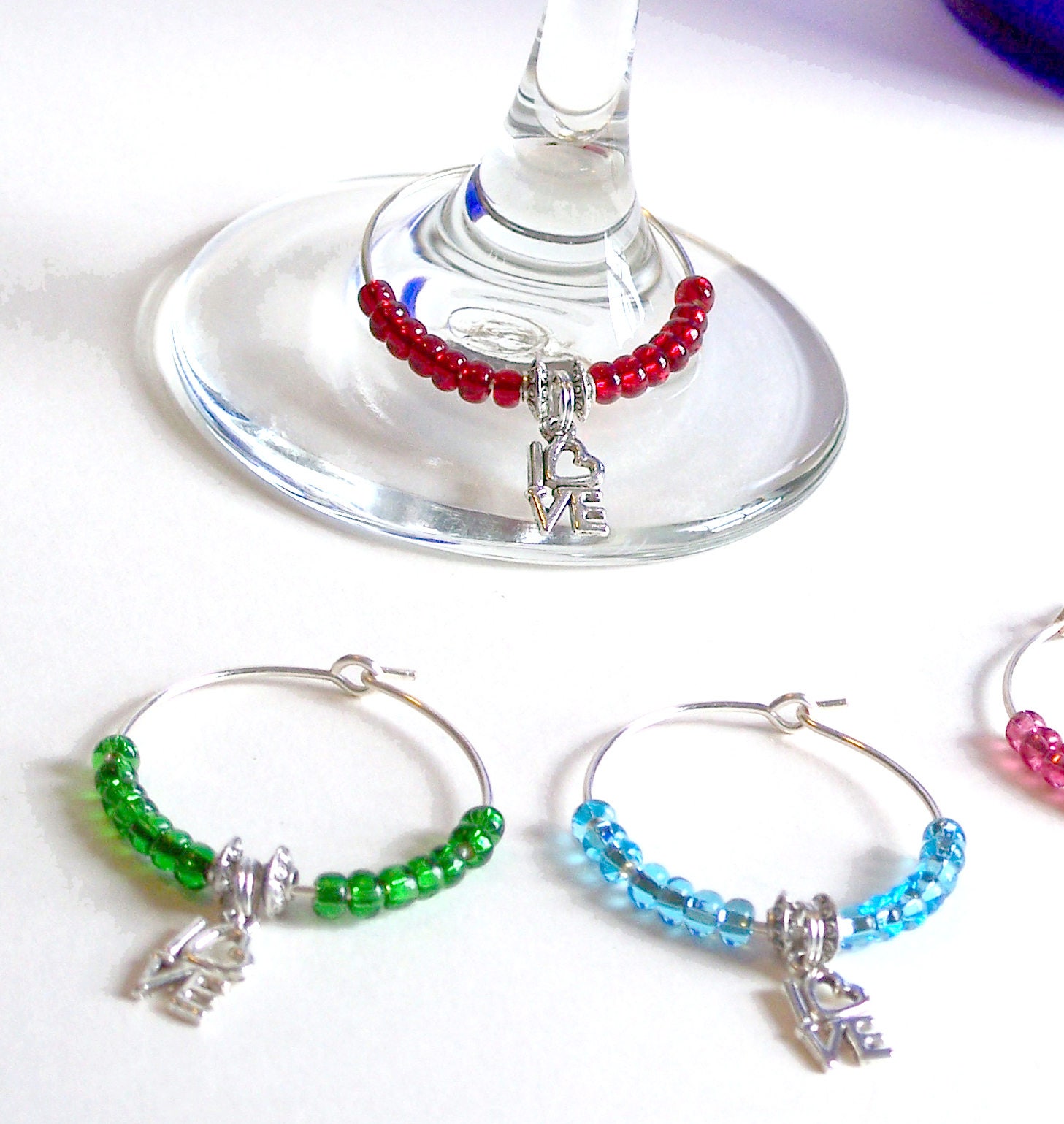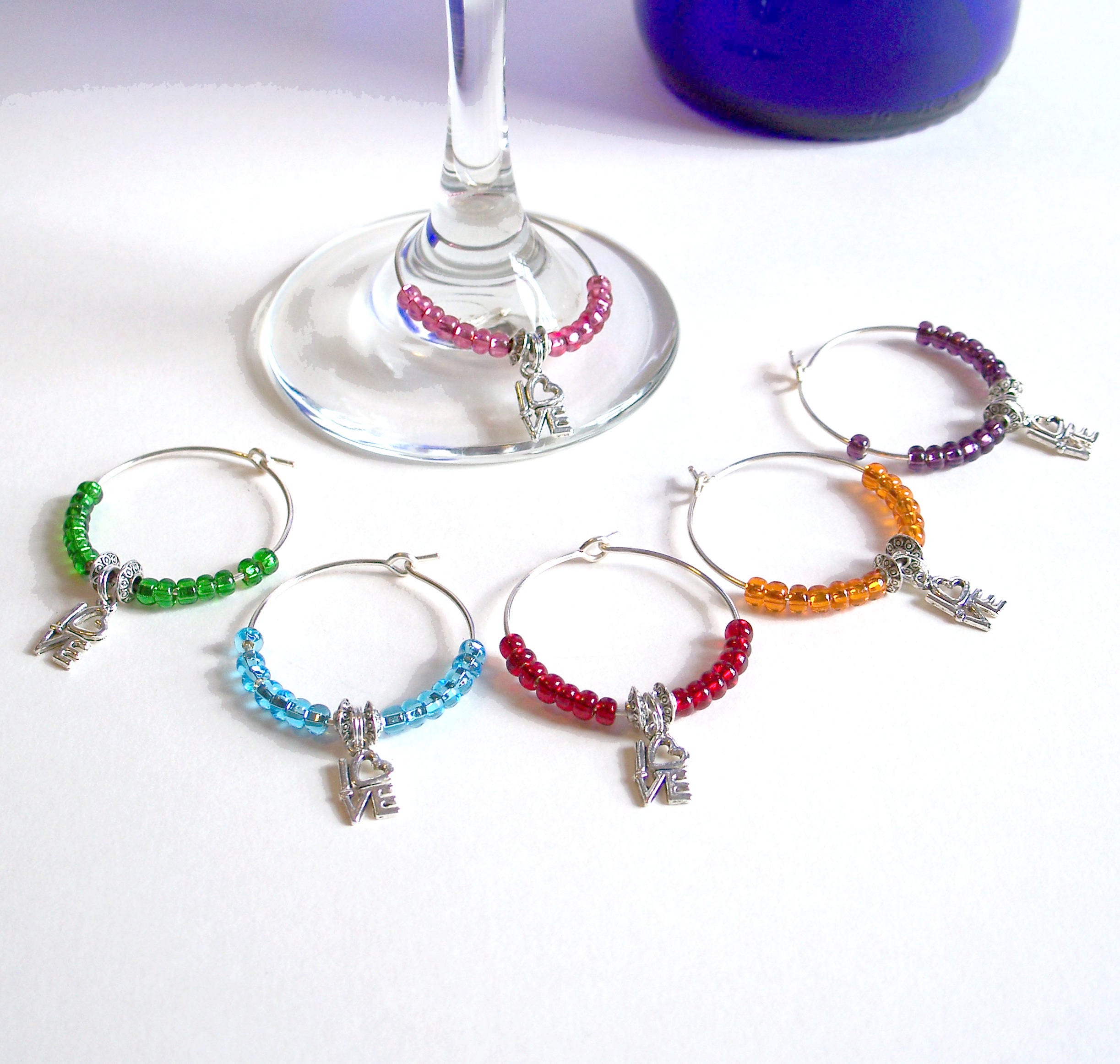 Jewelry for your wine glass, LOVE Wine Charms, Set of 6.
